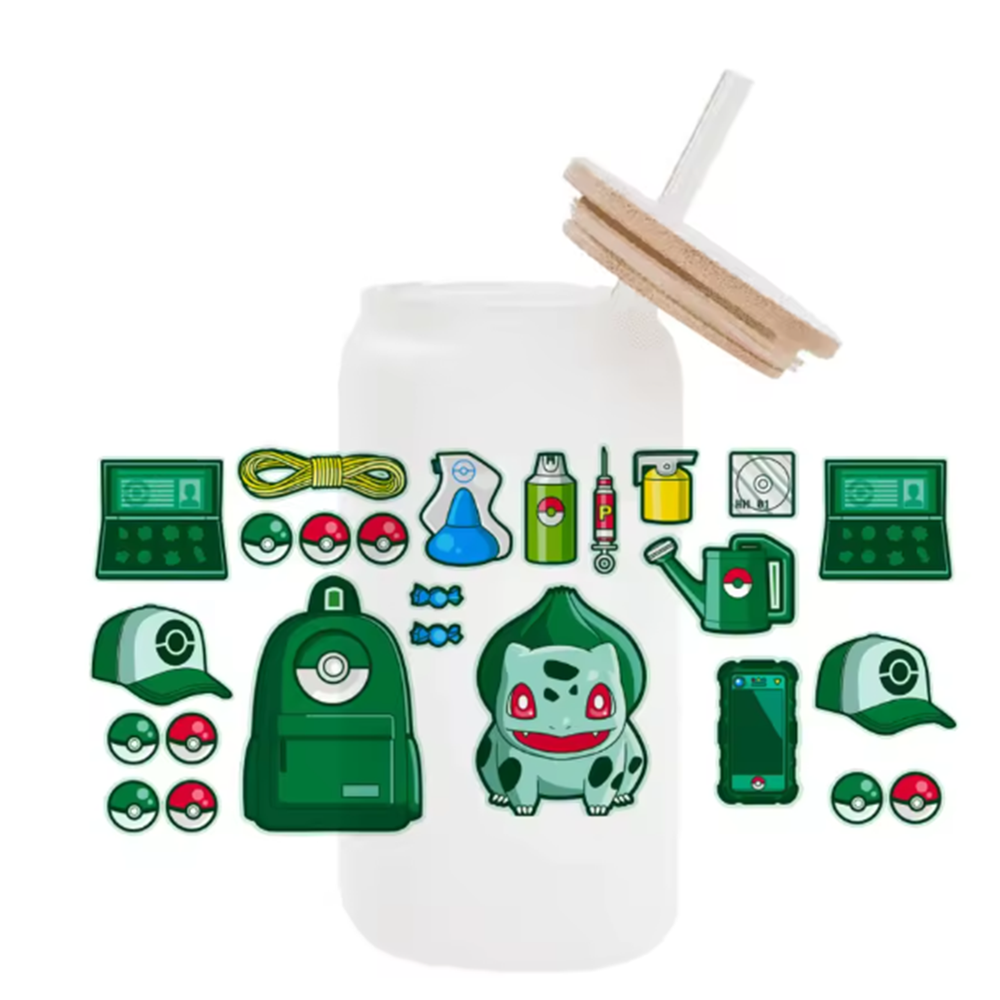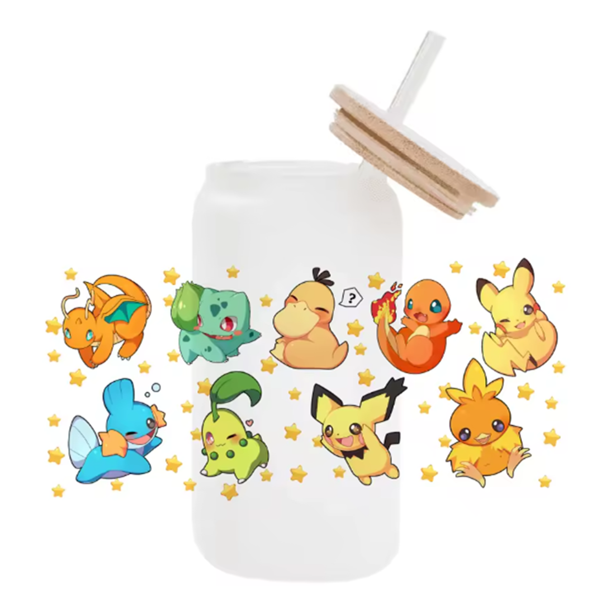 Cute Cartoon Pokemon Pikachu UV DTF Transfer Glass Sticker Waterproof Transfers Decals For 16oz Glass Cup Wrap Stickers