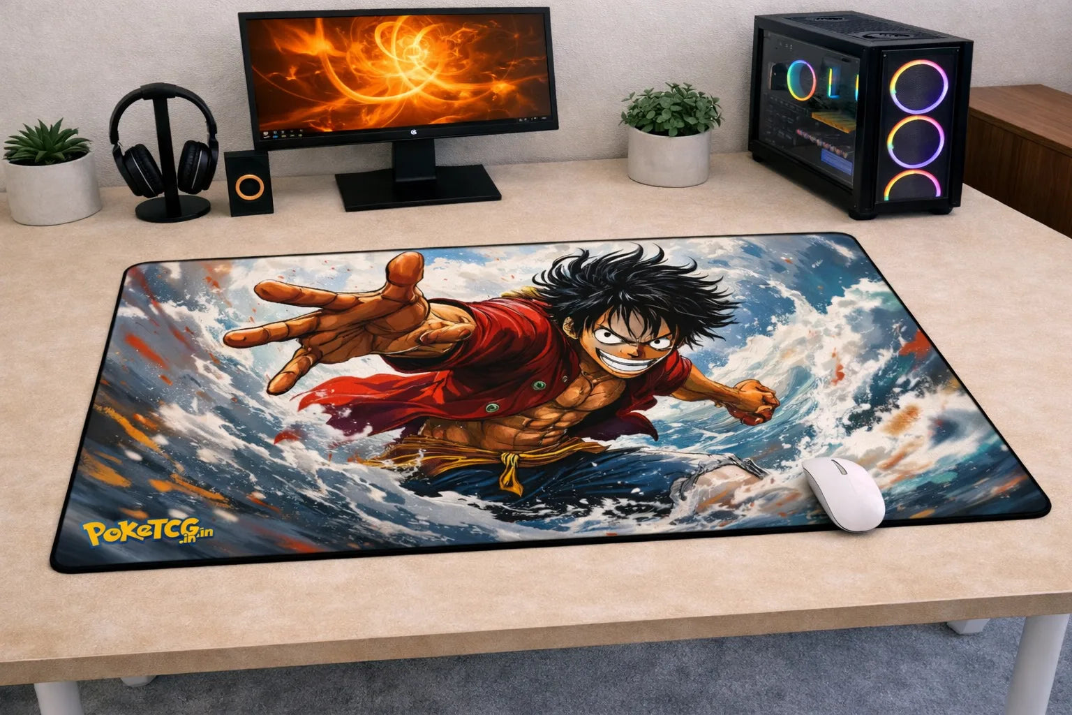Instantly transform your setup with this large XXL One Piece "Luffy’s Great Wave" mousepad inspired by the Anime universe (One Piece) ⚡🎮, only at Poketcg.in