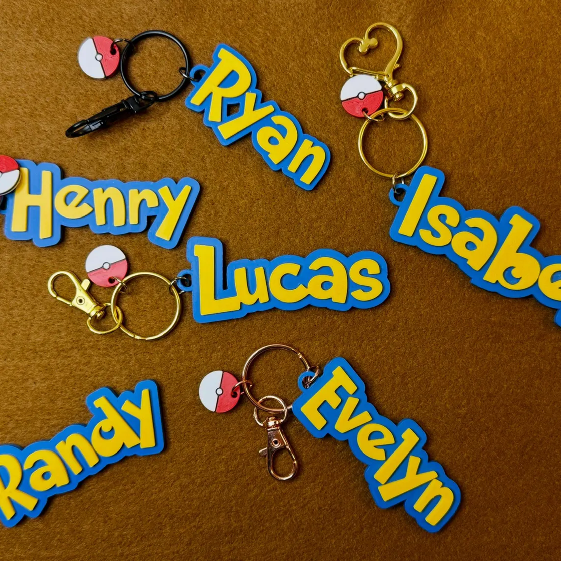 Personalize pokemon Charm Name Tag Keychain High Quality 3D Printed Custom Backpack, Keyrings, Luggage Lunchbox, Stocking Stuffer