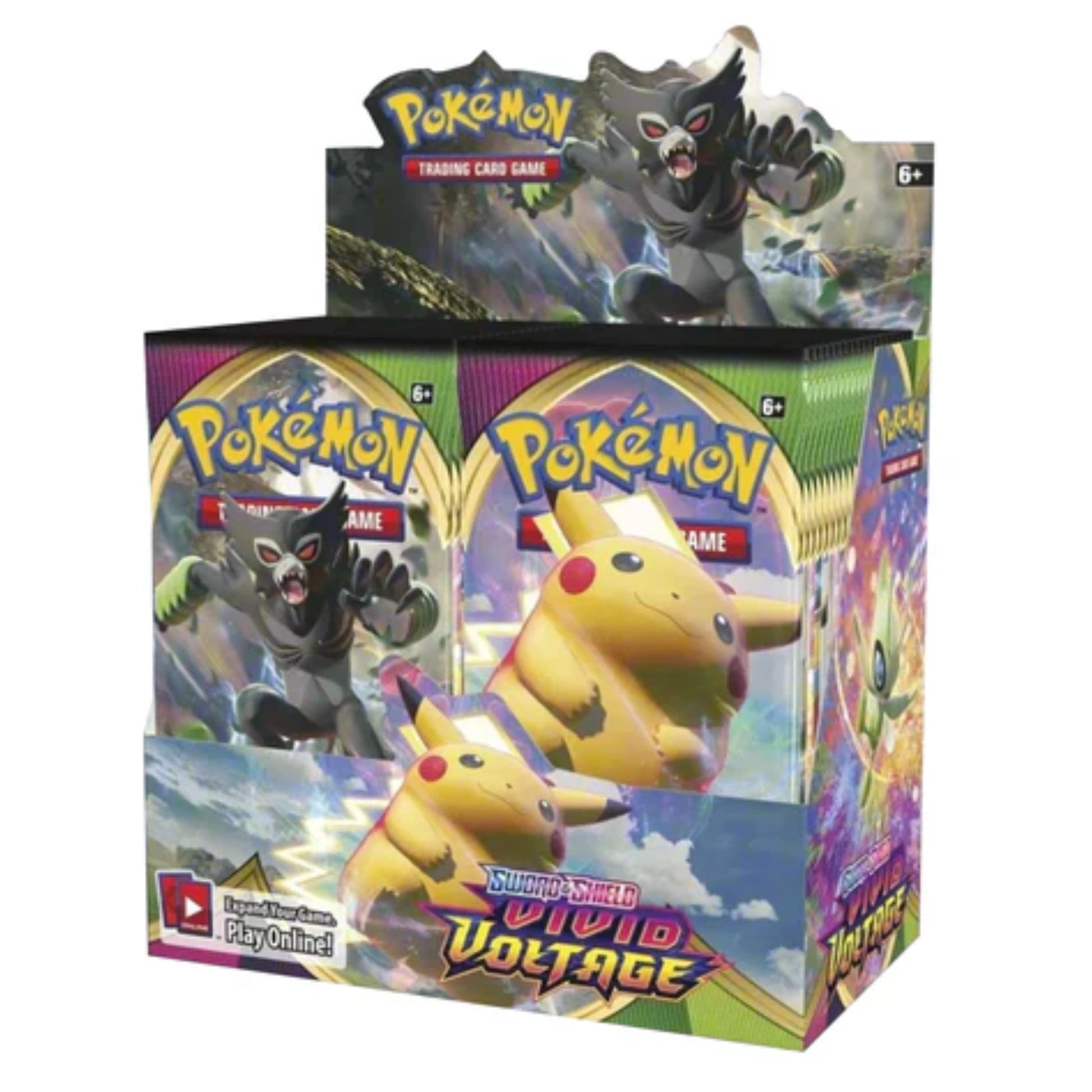 The Pokémon Sword & Shield Vivid Voltage Booster Box contains 36 booster packs, each with 10 random cards drawn from over 185 in the master set. This expansion introduces powerful new Pokémon V, including the Mythical Zarude, alongside striking Amazing Pokémon and Gigantamax Pikachu VMAX cards. With a vibrant mix of energy and color, Vivid Voltage offers collectors and players a rich selection from the Galar region, featuring 11 Pokémon V and 6 Pokémon VMAX that provide strategic depth and visual appeal for any deck or collection.
