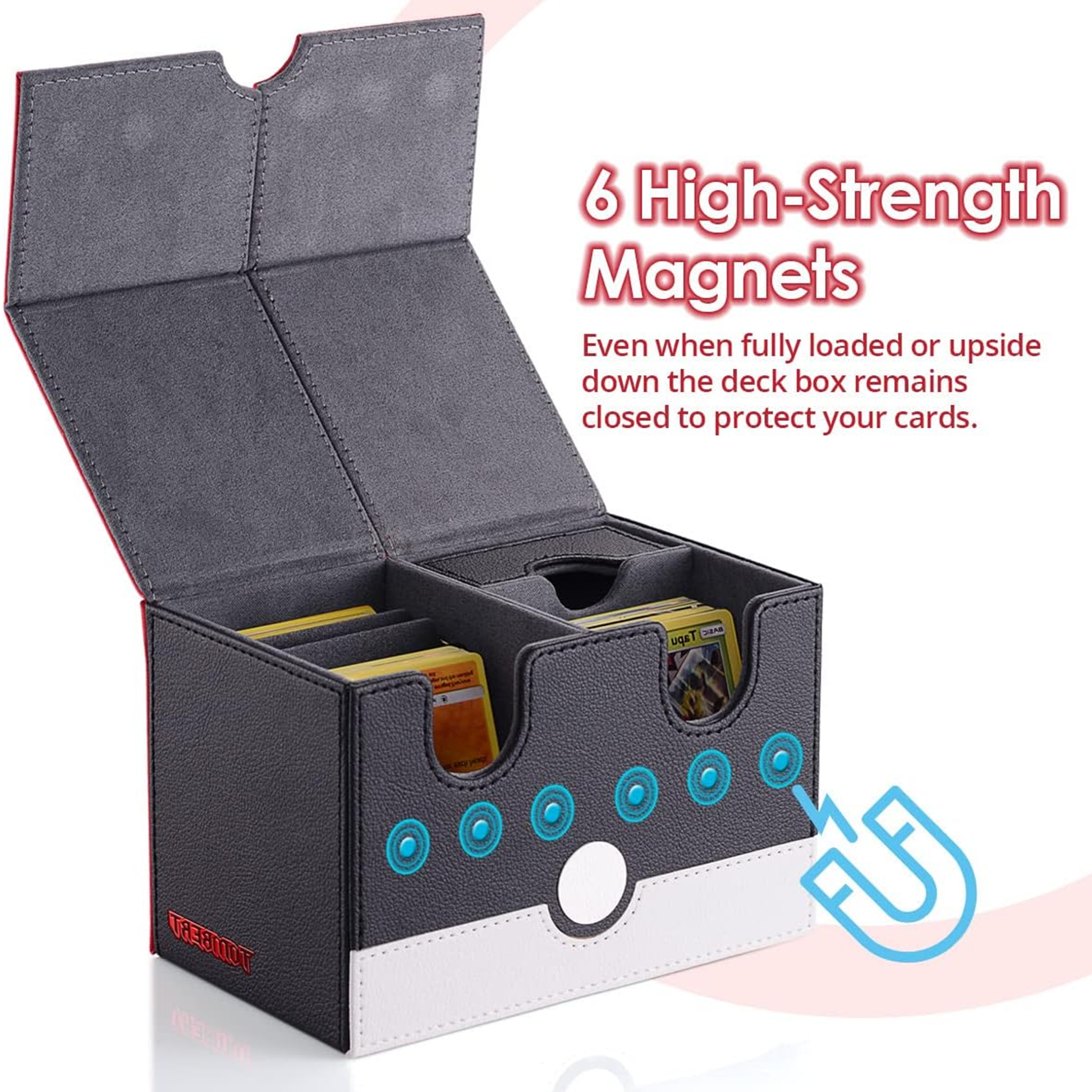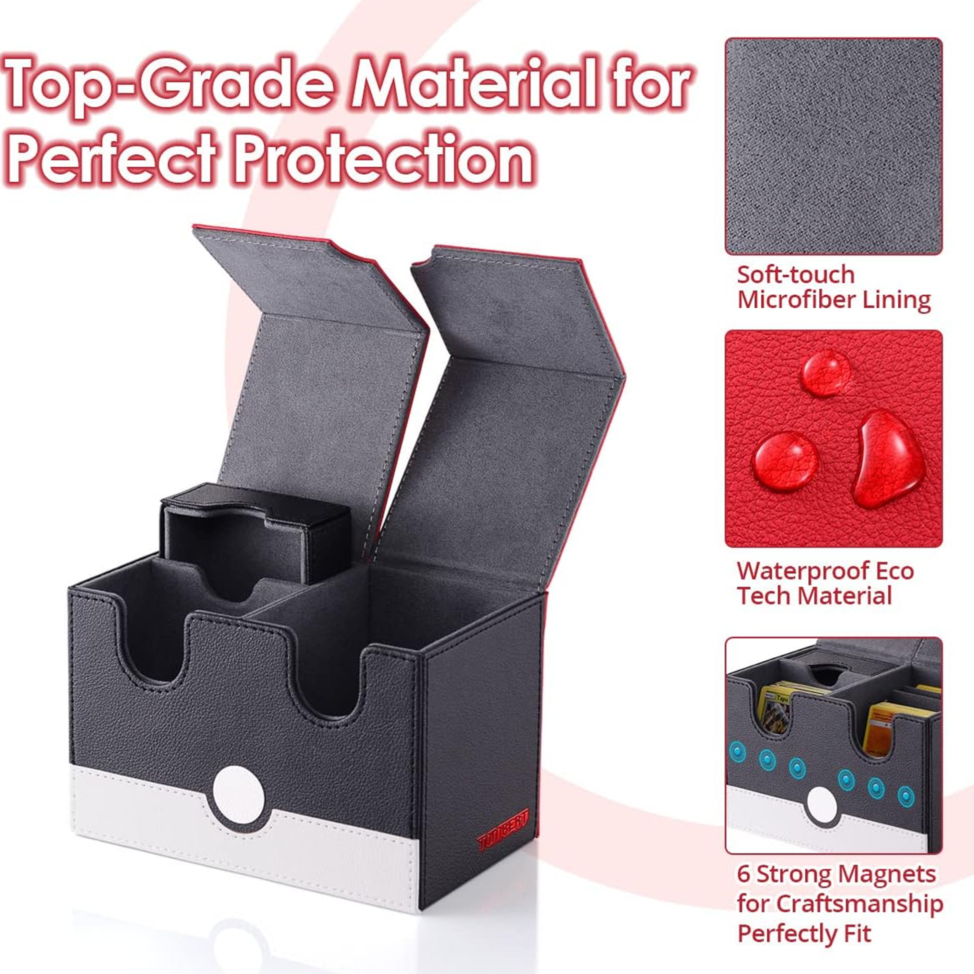 tombert Card Deck Box with 2 Dividers and a Dice Tray for MTG Cards, 380+ Card Storage Box Fits 150 Double Sleeved Cards for TCG CCG (Red &White)